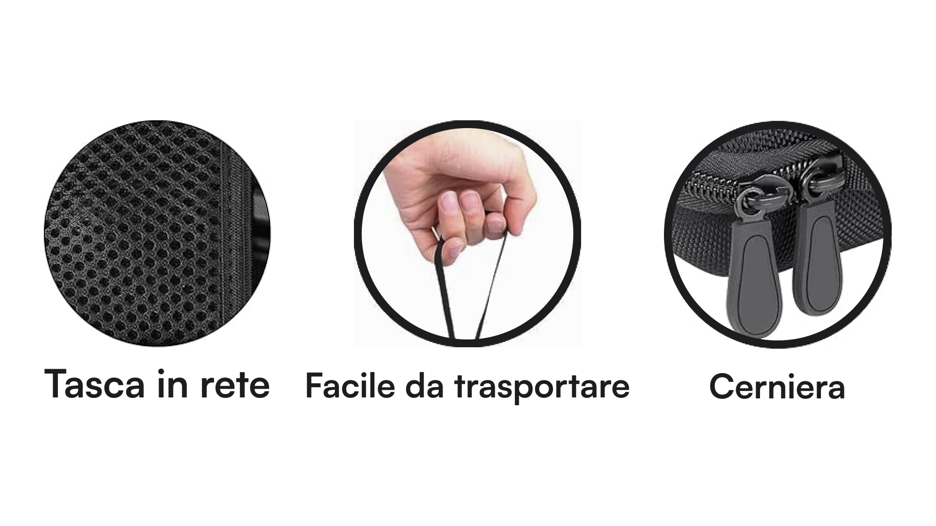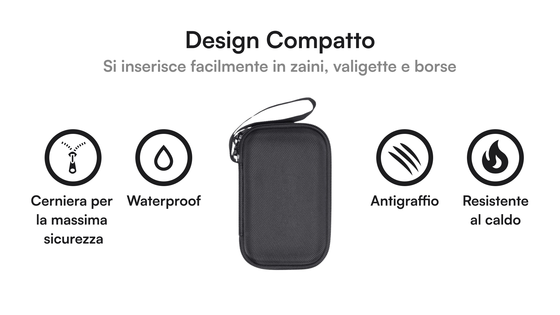 - La sua versatilità ti consente di utilizzarla per le tue esigenze quotidiane, oltre a essere il compagno di viaggio ideale. Mantieni tutto organizzato e al sicuro con la nostra custodia rigida da viaggio multifunzionale.