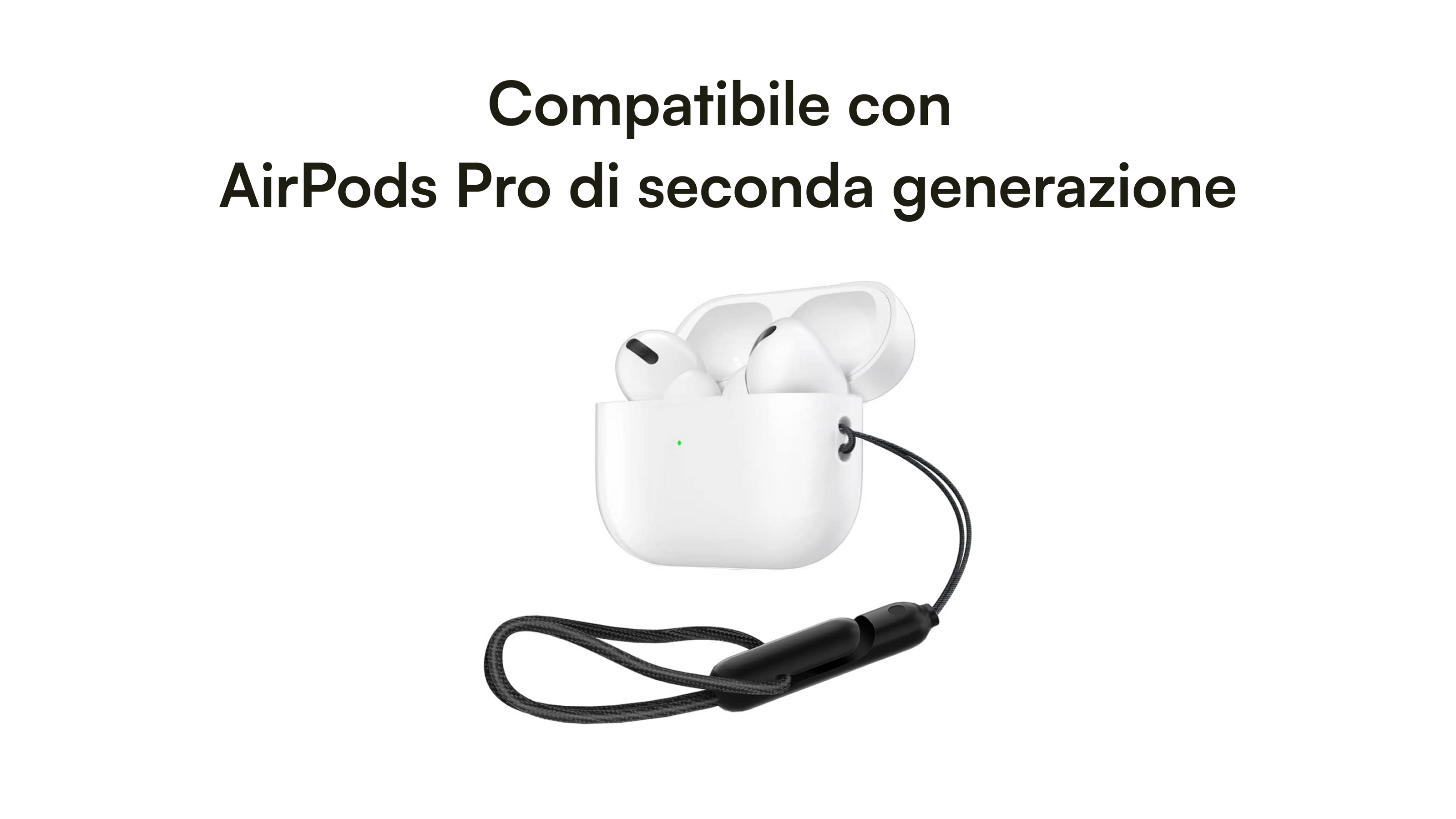 - Tieni a portata di mano i tuoi AirPods Pro 2 (seconda generazione) con un laccetto : è in morbido tessuto intrecciato, e lo puoi indossare al polso o agganciare allo zaino o alla borsa con la clip integrata.